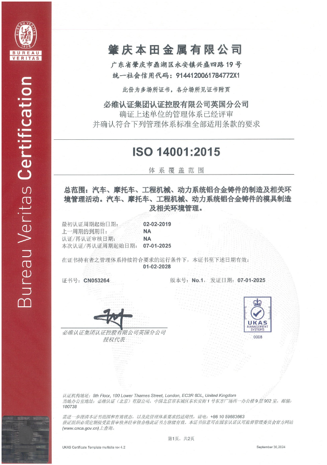 ISO14001认证证书