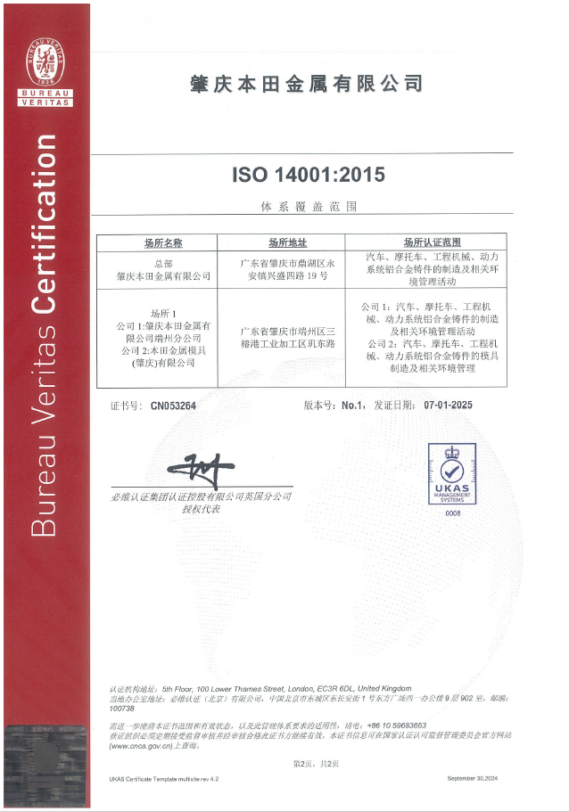 ISO14001认证证书